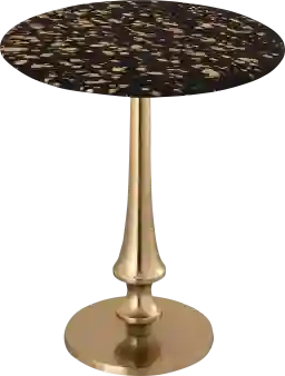 The edgy combination of gold-finished legs and a gold-flecked black onyx top is a hallmark of modern and glam interior styles. It serves as a sophisticated accent in contemporary rooms or Art Deco-inspired spaces. To create a cohesive look, our design experts suggest pairing it with other metallic accents or balancing the bold black finish with soft neutral rugs and upholstery.