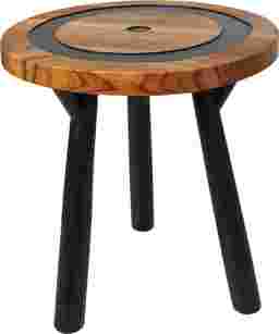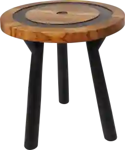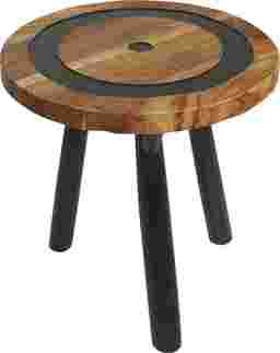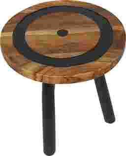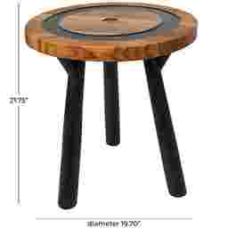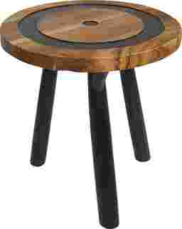The Dadrei accent table is the perfect addition to any home. Inspired by sleek elegance and clean lines, a minimalistic design offers effortless luxury with monochromatic tones and bold, angular structures. Crafted from high-quality teak wood, this brown side end accent table is not only durable but also exhibits a stunning grain pattern, adding unique character to the piece. This round table features a rich brown teak wood finish, beautifully varnished to add warmth and elegance to any room, while the contrasting black legs and layered circle accents add a touch of modernity. The compact design of this teak wood accent table makes it highly versatile, serving as an ideal surface for drinks, books or decorative items in smaller spaces. Customer assembly is required.