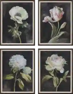 A set of four vertical prints offers great versatility for wall layouts. For a structured, formal look, hang them in a symmetrical 2x2 grid. For a more contemporary feel or to fill a long hallway, you can arrange all four in a single horizontal row. Because each print features a different botanical variety in a cohesive color palette, they can also be split into pairs to accent smaller wall sections or to flank a doorway.
