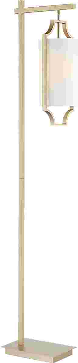 A simple yet elegant floor lamp; the soft gold of the Dakota Crest's open lantern design and soft white fabric shades brings lighted warmth to any decor. Customer assembly may be required.