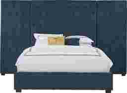 A sophisticated focal point in any contemporary bedroom, the Dalena wall bed features a stunning tufted upholstered design. Covered in soft blue fabric, this striking bed's sleek lines and towering headboard offer an impactful counterbalance to the plush fabric upholstery. Including dramatic side wings on either side of the headboard, this wall bed makes a dramatic statement. Mattress and foundation (if required) sold separately.