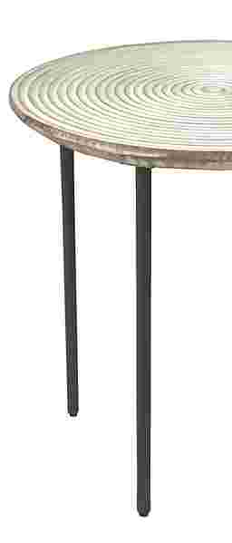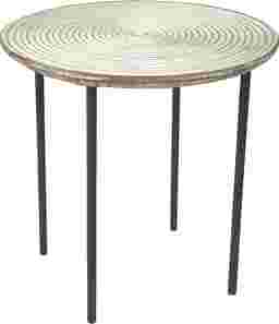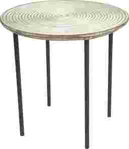 The Dalhousie side table features a round spiral pattern on solid mango hardwood, and set on solid iron legs with a pewter finish. Dust as required or wipe with a clean damp cloth. Occasional application of furniture wax will help prevent the wood from drying out over time and wipe up spills immediately.