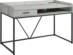 This desk is highly versatile due to its vintage industrial aesthetic. With its gray woodgrain detailing and black metal hardware, it can easily double as a stylish console or sofa table. Its neutral palette and minimalist silhouette allow it to blend seamlessly with existing living room furniture in homes that serve multi-functional purposes.