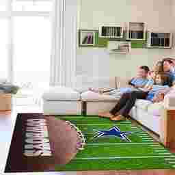 Add a touch of team spirit to your space with this vibrant 5 x 7 Dallas Cowboys Football Field Rug. Ideal for any room where Cowboys Fans gather, this rug is not only eye-catching but also practical. Its durable construction makes it perfect for high-traffic areas, and the machine-washable design ensures it stays party, pet, and kid-friendly. Plus, the high-quality backing prevents any unwanted sliding. Show your love for the Cowboys with this stylish and functional rug.