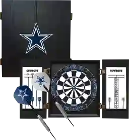 The Fan's Choice Dallas Cowboys dartboard set features your favorite team logo and includes a premium 18-inch tournament sized, self-healing bristle dartboard. Self-healing bristle dartboards are some of the longest lasting boards on the market, since the holes close up after each dart is removed. This hanging dartboard cabinet will look great in your fan cave or any room that your family and friends gather. It's easy to assemble and the cabinet comes preassembled and ready to hang on the wall. Secure the dartboard and you are ready to have hours of enjoyment.