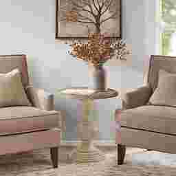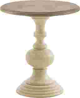 Update your living room decor with the beautiful Dallum accent table. This round accent table features an MDF table top with a natural finish that contrasts with the white finish on solid wood base, for a chic transitional look. Showcasing a classic charm, this wood accent table provides elegant addition to your home decor. Customer assembly is required.