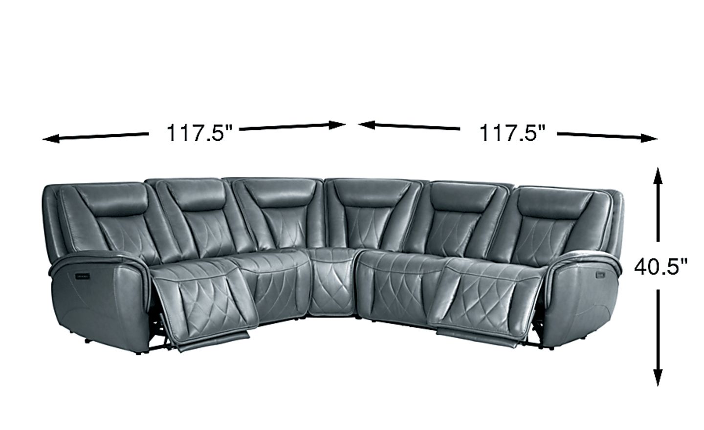 The luscious curves and opulent details of the Dalton sectional take luxurious living to its most heavenly extremes. This transitional collection showcases sumptuous top grain leather where the body touches in a rich blue color. Extra wide seats detailed with top-stitched seams and decorative quilting are surrounded by ultra plush cushions for exceptional support. On each padded armrest and back cushion welted seams add a subtle touch of elegance. Triple power reclining features zero-gravity adjustable headrests, footrests, and lumbar support for the ultimate in comfort, and each activator switch has convenient USB charging. Upholstery: Top grain leather where the body touches and polyurethane fabric sides and backs. Leather is a durable, low maintenance product, however, general regular maintenance is necessary. To keep your leather clean, vacuum it regularly, removing any dust, and clean it with water and a mild non-detergent soap.