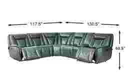 The luscious curves and opulent details of the Dalton sectional take luxurious living to its most heavenly extremes. This transitional collection showcases sumptuous top grain leather where the body touches in a rich blue color. Extra wide seats detailed with top-stitched seams and decorative quilting are surrounded by ultra plush cushions for exceptional support. On each padded armrest and back cushion welted seams add a subtle touch of elegance. Triple power reclining features zero-gravity adjustable headrests, footrests, and lumbar support for the ultimate in comfort, and each activator switch has convenient USB charging. Included is a storage console with wireless charging and hidden cupholders, keeping relaxation convenient and stylish. Upholstery: Top grain leather where the body touches and polyurethane fabric sides and backs. Leather is a durable, low maintenance product, however, general regular maintenance is necessary. To keep your leather clean, vacuum it regularly, removing any dust, and clean it with water and a mild non-detergent soap.