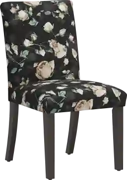 Secure the ideal Dalzell dining chair for your table when you select this versatile piece. With its hand upholstered floral fabric, and superior construction, you can feel good about adding it to your overall dining design in multiples This square chair is graced with tasteful tapered wooden legs that add an air of sophistication. In addition, the armless construction makes it a sensible choice for dining areas both large and small. This piece is made to order and may take up to 6 weeks to deliver. Customer assembly is required.