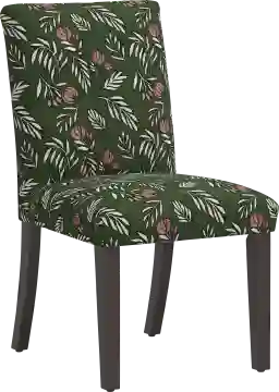 Secure the ideal Dalzell dining chair for your table when you select this versatile piece. With its hand upholstered floral fabric, and superior construction, you can feel good about adding it to your overall dining design in multiples This square chair is graced with tasteful tapered wooden legs that add an air of sophistication. In addition, the armless construction makes it a sensible choice for dining areas both large and small. This piece is made to order and may take up to 6 weeks to deliver. Customer assembly is required.