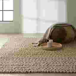 The hand-woven technique used for this rug creates a thick pebble weave, providing a rich, multi-dimensional texture that is far more tactile than machine-made options. This artisan method ensures a high-quality, contemporary finish that adds both visual depth and "indulgent softness" to a room, acting as a sophisticated focal point for casual or modern decor.