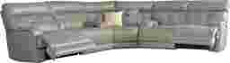 Living large is easy with the Damiano sectional. It perfectly balances contemporary styling with a crisp tailored look that's nothing short of stunning. The sectional is upholstered in soft, breathable fabric in a beautiful pewter color. Comfortable seating for up to five people includes two reclining seats with padover chaise footrests for full leg support. Additional features include padded headrests and arms along with stylish tufting and contrast stitching detail. 85% Polyester, 15% Polyurethane. Accent pillows not included.