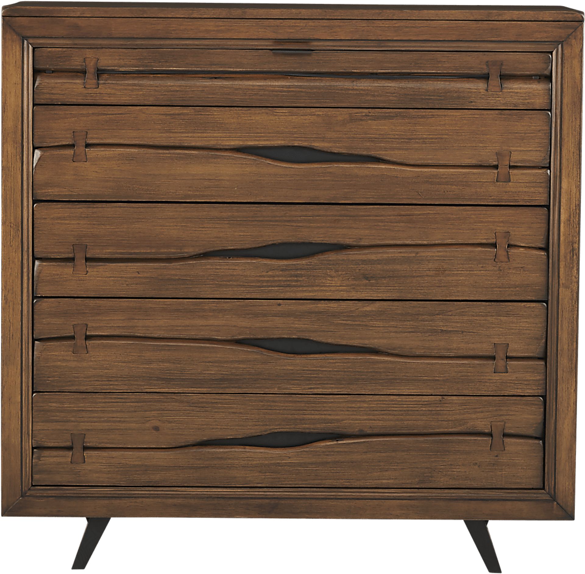 Crafted of solid Brazilian pine wood in a rustic brown finish, the Dana Point bureau offers contemporary rustic design and much needed storage space in one stylish package. Boasting four spacious drawers utilizing French dovetail construction for added strength and stability plus a felt-lined jewelry drawer for delicate items, this bureau's unique live edges on each drawer front eliminate the need for hardware. Sleek angled legs complete the high end contemporary look.