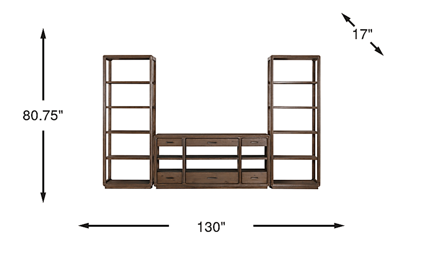 130.00"w x 17.00"d x 80.75"h