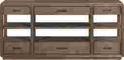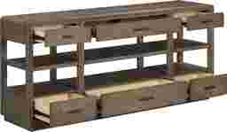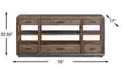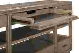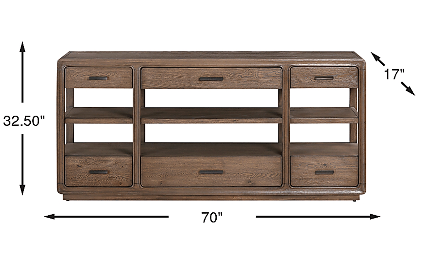 Weaving light and dark, chic and timeless, solid and ethereal, the Danan console's expertly balanced transitional flair is an object lesson in "less is more". This 70" accent features six drawers, including a fold-down front on the central drawer for easy access. The open central shelves have open sides and backs allowing light to dance across subtly curved oak veneers in a light brown finish.