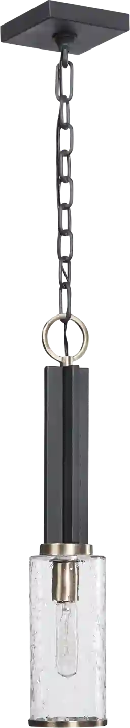 Refined industrial with clean lines on our one light Daniela Avenue mini pendant featuring a sanded black finish on the I-beam style frame with refined antique brass accents and clear meteor shower glass shade. When simple defines refinement! Professional installation recommended by an electrician.