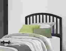 The Daniva with a timeless slat design and classic arched silhouette, this twin headboard is a testament to the adage that simplicity is beautiful. The gently arching top rail contrasts nicely with the vertical slats underneath, resulting in a cohesive, balanced look. With softly rounded corners, this piece is right at home with the peaceful coastal farmhouse aesthetic but will complement almost any style. This durable headboard is constructed from solid wood and is finished in a handsome black. Frame, box spring and mattress required; not included. Customer assembly is required.