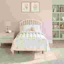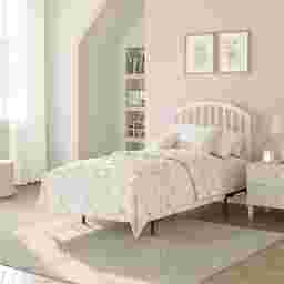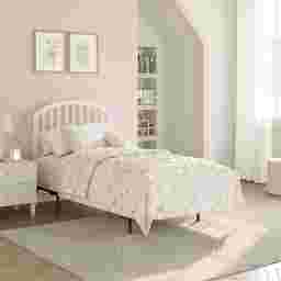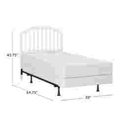 The Daniva timeless white twin-size headboard and frame set features vertical wooden slats across its width, contributing a balanced and cozy feel to any bedroom. A gentle arch provides visual contrast without intruding on personal design choices. Soft, rounded corners exude comfort and tranquility in any space. Constructed with durable solid wood, this headboard is a stylistically versatile long-term choice that makes the spaces in your household feel like home. Headboard and headboard frame included. Box spring and mattress required; not included. Customer assembly is required.