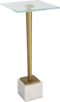 A beautiful marble base supports the slender brass plated iron body of this Danom accent table. The tempered glass top lets the beauty of this table shine through. Perfect for your favorite beverage or your favorite book. Customer assembly is required.