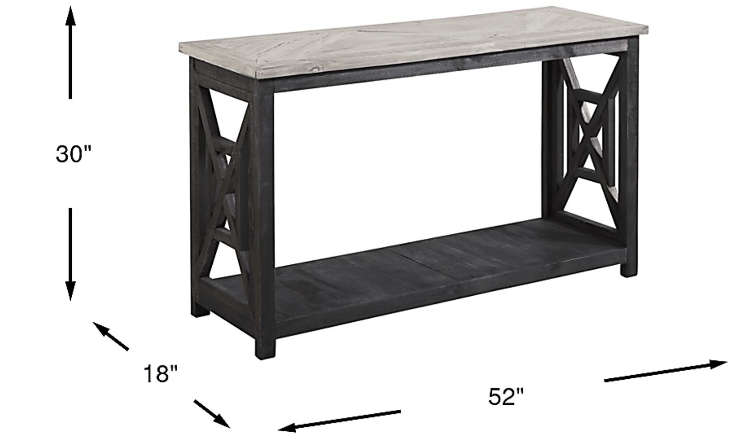 Harboring an austere appeal, the Danusa sofa table brings charm and style to your gathering area. This farmhouse-inspired table is crafted of pine with a natural gray-finished top and a distressed black base. Along with two-tone color, it displays a decorative motif on each end above the lower shelf.