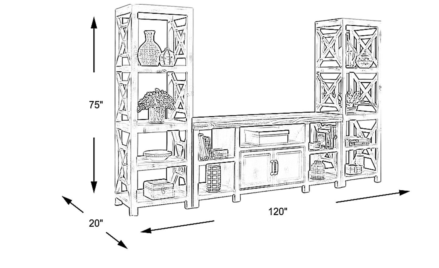 120"w x 20"d x 75"h