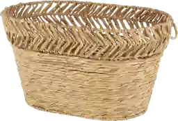 This basket measures 30"W x 20"D x 16.5"H, making it a substantial piece for organizing larger items. Its generous width and oval shape make it an ideal fit at the foot of a bed for extra linens, tucked under a large console table in an entryway, or placed in a living room to neatly house throw pillows and blankets.