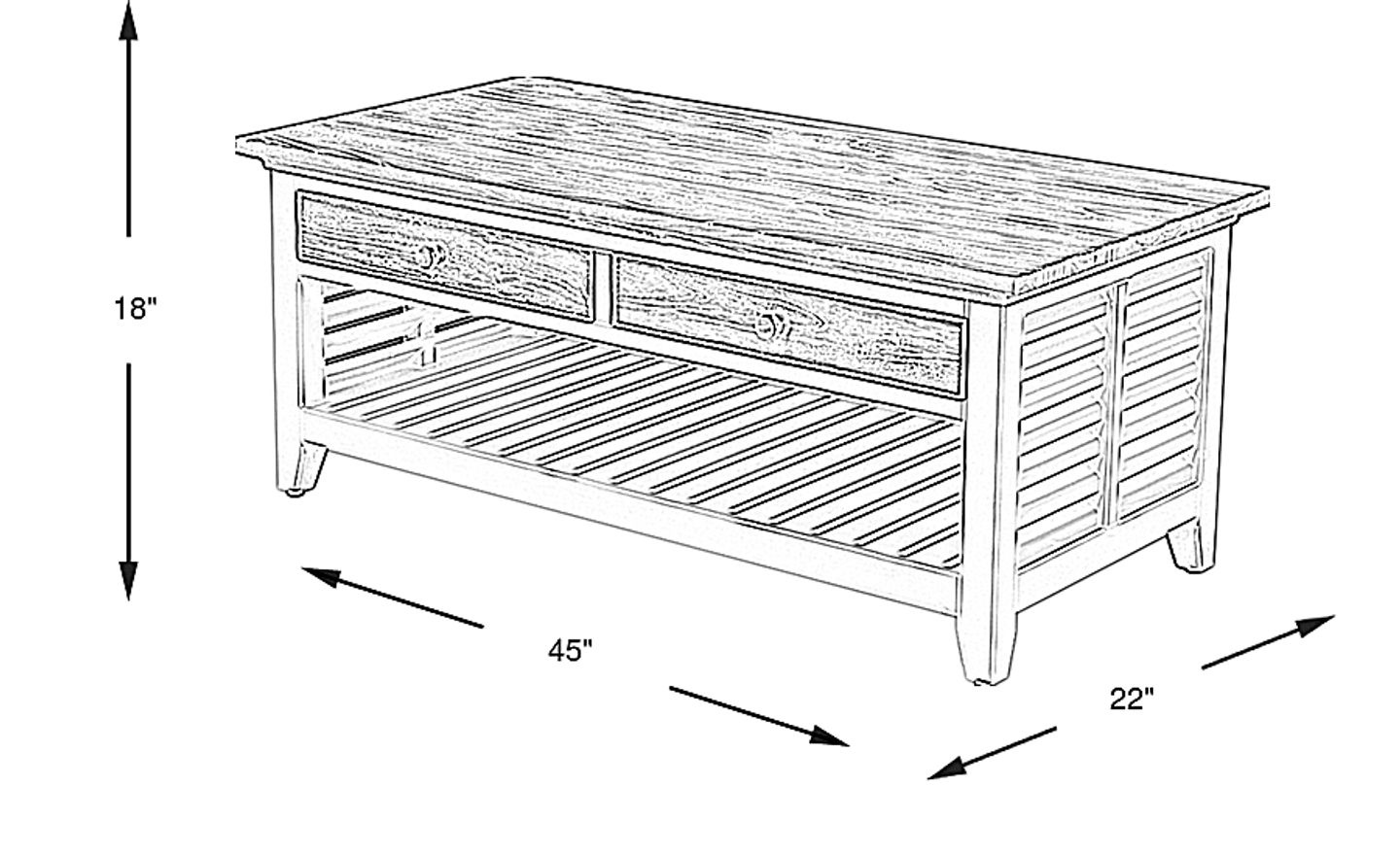 For a balanced look, interior designers often follow the "2/3 rule," where the table should be approximately two-thirds the length of your sofa. At 45 inches wide, this table is an ideal match for standard sofas ranging from 65 to 75 inches. Additionally, its 18.25-inch height is designed to sit level with or slightly below most seat cushions, ensuring comfortable access to drinks or remotes.