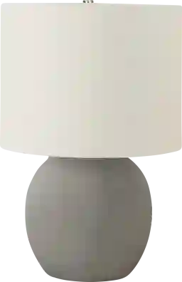 The stylish and fashionable Darcy Trail Gray Lamp with a gray concrete globe-shaped base and topped with a contrasting ivory linen drum shade, is the perfect accent to brighten any room. With a contemporary appeal, place this versatile decorative lamp on a side or end table, on a console, or on your nightstand to create a warm and inviting atmosphere. Partial assembly may be required.