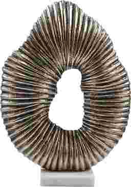 The Darda is timeless elegance with the antique silver ribbed oval sculpture will elevate your decor with its sophisticated allure. Crafted with a striking, imperfect oval shape, the sculpture's unique wavy top and rounded bottom create a sense of movement and fluidity, making it a true work of art. The hollow, see-through center adds an intriguing element of lightness and transparency, inviting the eye to explore its captivating form from every angle. Resting on a classic white marble base, this sculpture effortlessly blends modern design with timeless elegance. The ribbed texture, paired with the antique silver finish, adds depth and richness, making it the perfect statement piece for any living room, office, or entryway. Customer assembly is required.