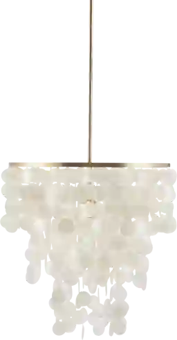 Absolutely. The use of natural shell for the tiered shade drapes makes it a perfect anchor for coastal or "beach chic" decor, as the material evokes an organic, seaside feel. Simultaneously, the tiered metal frame and gold finish provide the sleek, structured lines required for contemporary or transitional spaces, allowing it to bridge the gap between relaxed and formal aesthetics.
