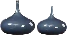 The Dariya vase comes as a set of two, uniquely shaped ceramic stem vases feature a spinning top pattern in multiple tones of blue. Sizes S-7x7x7, L-9x8x9