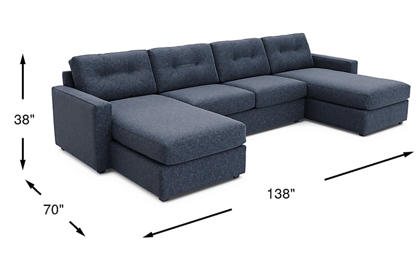 138.00"w x 70.00"d x 38.00"h
