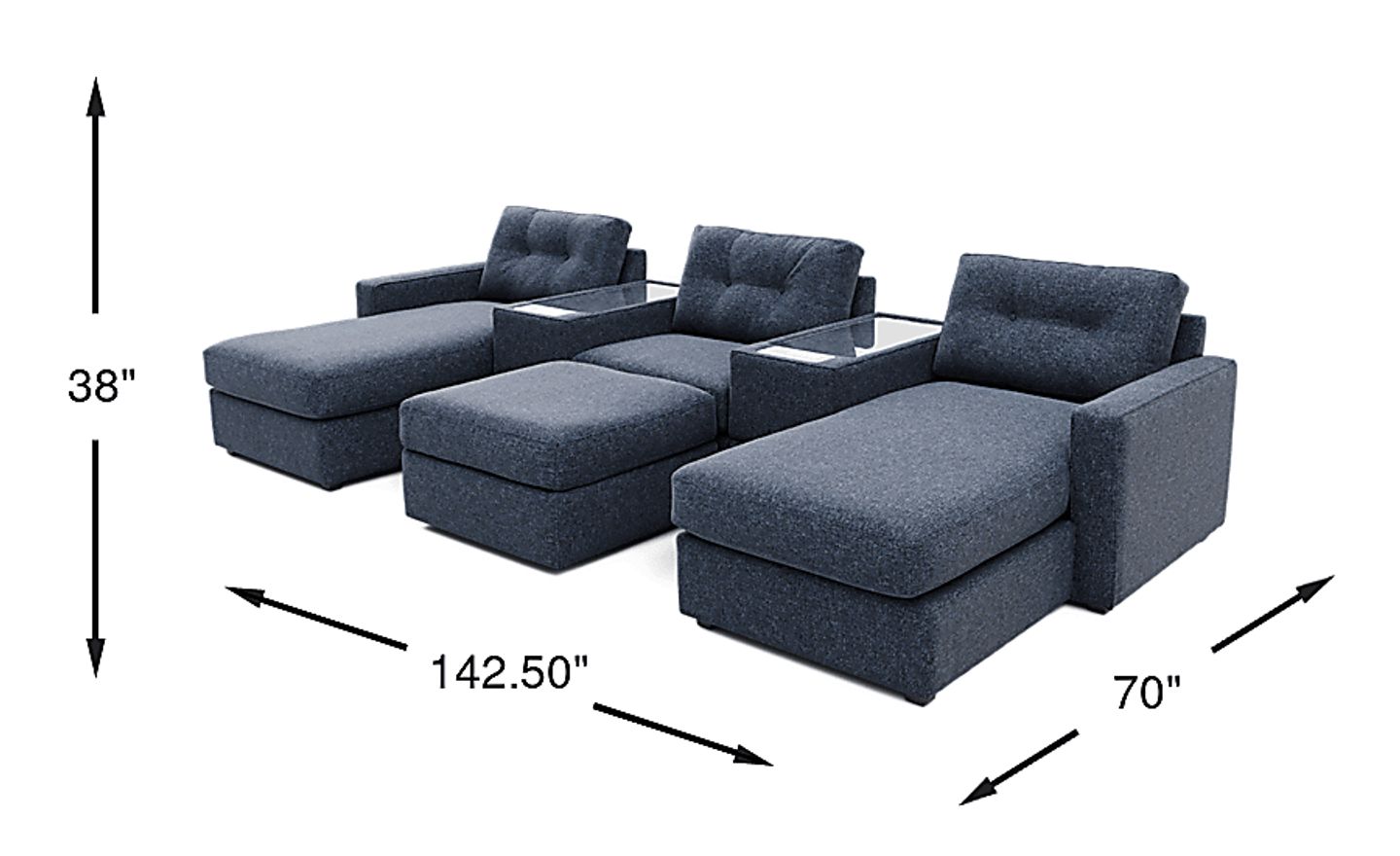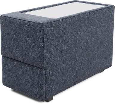 Discover the limitless possibilities of the Drew & Jonathan ModularOne, thoughtfully designed with comfort and flexibility in mind. This customizable seating solution features individual pieces that can be configured to any shape your room needs - the seating arrangement you want is always right at your fingertips. Each individual piece is upholstered on all sides in handsome dark blue textured fabric. The seating area has welted track arms, top-stitched seat cushions and button-tufted back cushions for an elegant silhouette. Two media consoles provide hidden storage, USB charging ports, wireless charging, bluetooth-enabled speakers, and double as side tables with sleek acrylic tops. Includes LAF chaise, 2 media consoles, RAF chaise, and storage ottoman. Upholstery: 100% Polypropylene.