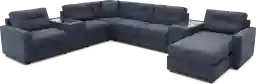 As part of the Drew & Jonathan ModularOne collection, this set offers maximum configuration flexibility. Each of the seven pieces is upholstered on all sides in the dark blue textured fabric, allowing you to reconfigure the shape to suit your specific room layout—whether you need a standard L-shape, a U-shape for movie nights, or even separate seating units for game days.