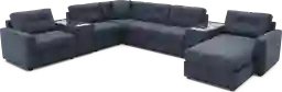 Discover the limitless possibilities of the Drew & Jonathan ModularOne, thoughtfully designed with comfort and flexibility in mind. This customizable seating solution features individual pieces that can be reconfigured to the shape you need for game days, sleepovers, or just everyday relaxation. Each piece is upholstered on all sides in dark blue textured fabric. The collection boasts welted track arms, top-stitched seat cushions and tufted back cushions for an elegant silhouette. Two media consoles offer storage, USB ports and wireless charging, bluetooth-enabled speakers, and double as side tables with acrylic tops. A Sealy Royale mattress is tucked inside the armless loveseat for guests who would like to extend their stay. Upholstery: 100% polyester.