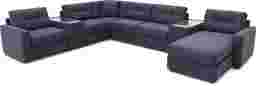 Discover the limitless possibilities of the Drew & Jonathan ModularOne, thoughtfully designed with comfort and flexibility in mind. This customizable seating solution features individual pieces that can be configured to any shape your room needs - the seating arrangement you want is always right at your fingertips. Each individual piece is upholstered on all sides in handsome dark blue textured fabric. The seating area has welted track arms, top-stitched seat cushions and button-tufted back cushions for an elegant silhouette. Two media consoles provide hidden storage, USB charging ports, wireless charging, Bluetooth speakers, and double as side tables with sleek acrylic tops. Includes RAF chaise, 2 media consoles, 3 armless chairs, wedge, and LAF chair. Upholstery: 100% Polypropylene.