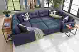 Discover the limitless possibilities of the Drew & Jonathan ModularOne, thoughtfully designed with comfort and flexibility in mind. This customizable seating solution features individual pieces that can be configured to any shape your room needs - the seating arrangement you want is always right at your fingertips. Each individual piece is upholstered on all sides in handsome dark blue textured fabric. The seating area has welted track arms, top-stitched seat cushions and button-tufted back cushions for an elegant silhouette. Includes LAF chair, 2 wedge seats, 2 armless chairs, LAF chair, and 2 storage ottomans. Upholstery: 100% Polypropylene.