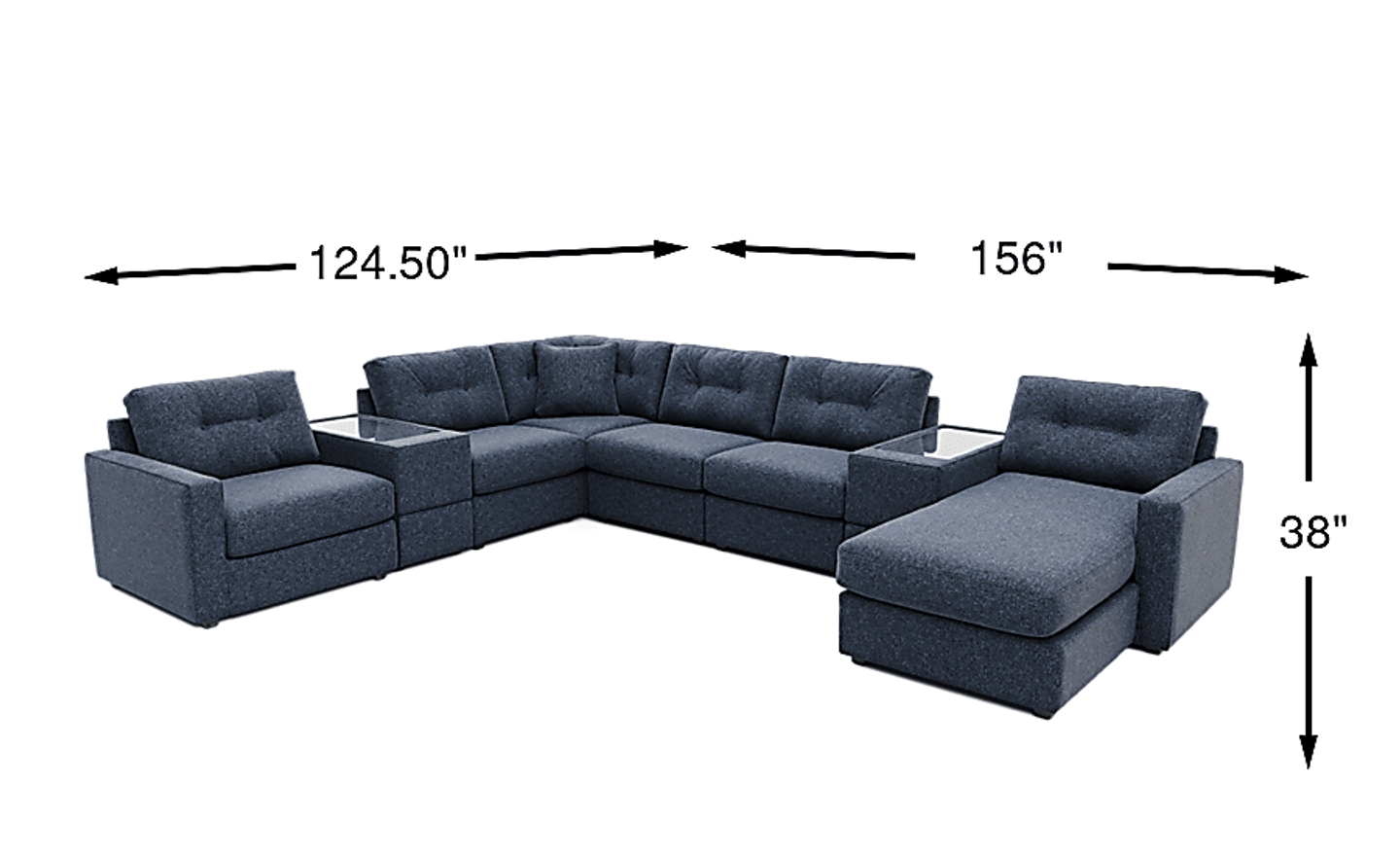 With a substantial footprint of 156"W x 124.5"D, this set is designed for large, open-concept living rooms. Our experts recommend using painter’s tape to map out the dimensions on your floor before purchase. To maintain a comfortable flow, ensure you have at least 18 to 24 inches of clearance for walkways around the sectional and check that your doorways can accommodate the 38-inch height of the pieces during delivery.