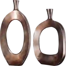 The Darrio vase is an over-sized set of two, handcrafted, textured cast aluminum vases featuring a bronze finish. Sizes S-13x18x2, L-11x22x2
