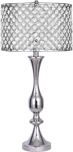 This lamp is designed to be a centerpiece of light and shadow. The shade features faceted genuine crystal beads that are individually threaded into the polished nickel frame. When illuminated, the crystals refract the light to cast radiant, distinctive cascading patterns across your walls and surfaces. This makes it an excellent choice for a living room or entryway where you want to create a sophisticated, shimmering atmosphere.