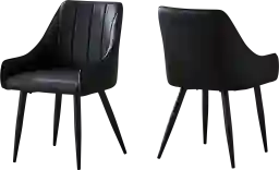 You'll want to remain seated at the table in these supremely comfortable Dashby upholstered dining chairs in a black leather-look fabric. With vertical channel tufting for a luxurious feel, the padded back and sides curve around the seat and slope down to form low, integrated armrests. The cushioned seat is deep and generously padded for ultimate support. Angled and tapered chrome metal legs add a modern look. Sold as a 2-piece set, these stylish chairs are ideal for an eat-in kitchen or formal dining room, or as accent chairs in other rooms. Customer assembly is required.