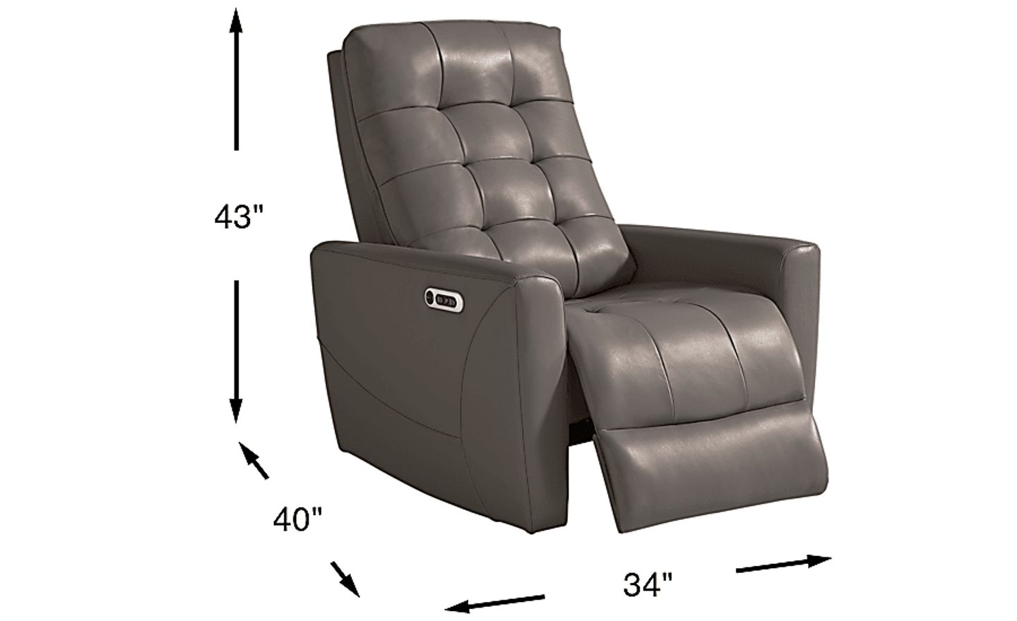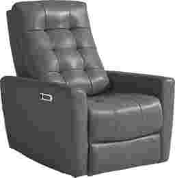 The sleek curvature and uptown sophistication of the Dashwood recliner delivers a tranquil, spa-style lounging experience. Modern in style and upholstered in a top grain leather where the body touches, this recliner features a luxurious button-tufted look, comfortable padded arms, a chaise pad footrest and single attached seat and back cushion for ultimate leisure and relaxation. Dual power reclining options allow for headrest and footrest adjustment while the slight curve in the back provides support in the lumbar area to give you a soothing seat to unwind in after a long day. Upholstery: Top grain leather where the body touches. Polyurethane sides and back.