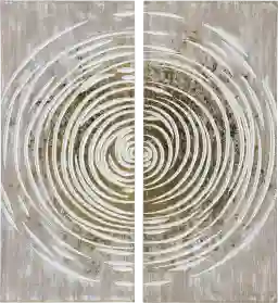 Transform your wall space with the Davenistroy gold wall art set of 2. White paint highlights the carved, circular pattern, while gold foil accents add a bold pop of color. Separate panels to create a cohesive look throughout your open concept living space or hang together as an oversized accent piece in your entryway. Bring an organic feel to your home when you hang this wall decor set in your living room or dining room. Customer assembly is required.