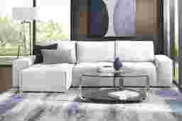 With all the same great features as its larger counterpart but sized for smaller spaces, the Davis Park sectional is packed with features meant to enhance your lounging experience. Each oversized seat has a smooth adjusting back mechanism for customizable seat depth, making it the perfect place for entertaining friends or relaxing with family. Contemporary and stylish, the platinum color and high performance fabric are enhanced with welted seams and clean, tailored lines. Accent pillows not included. Upholstery: 100% Polyurethane, clean only with water-based shampoo or foam upholstery cleaner. Do not use solvents to spot clean.