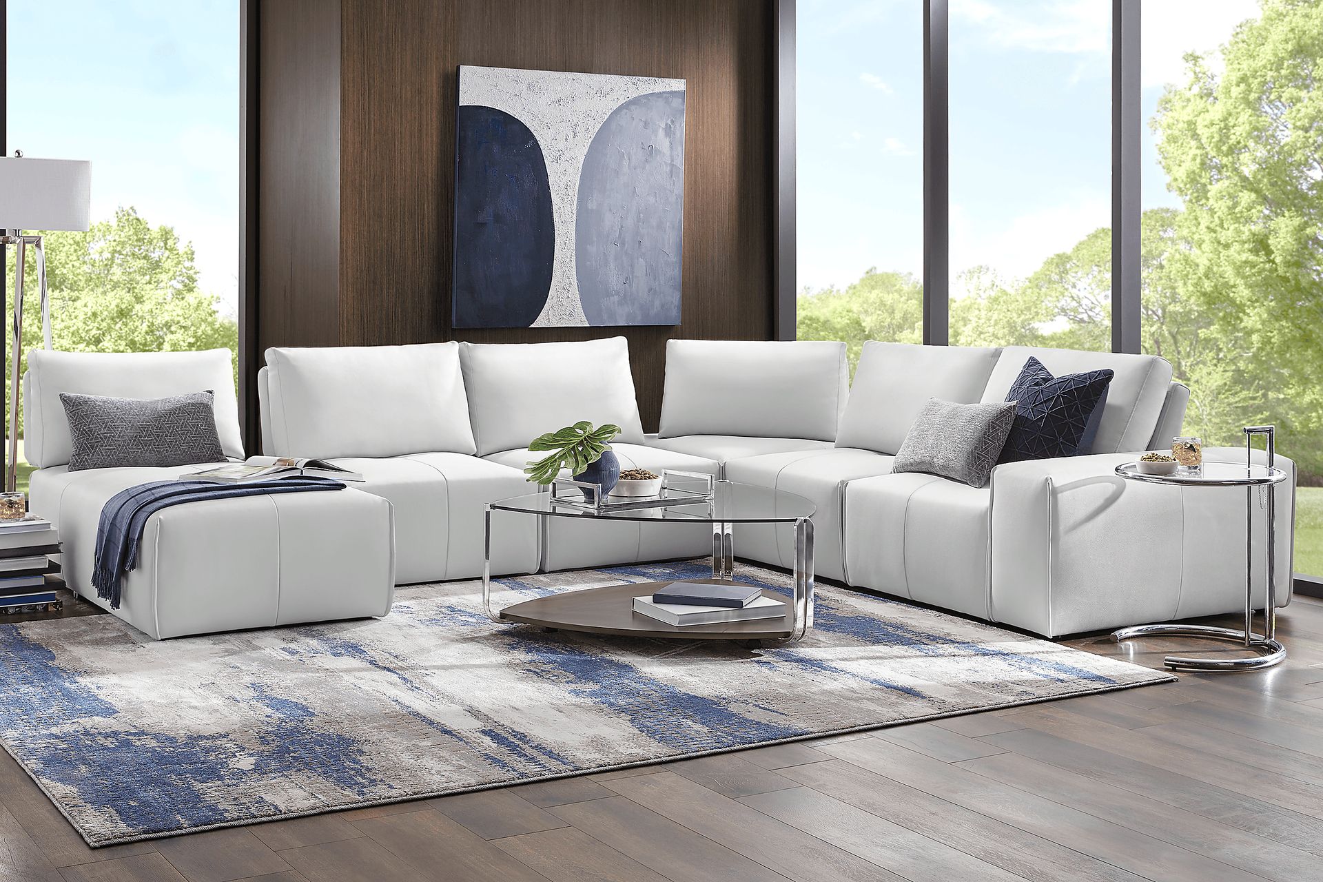 The Davis Park sectional is packed with features meant to enhance your lounging experience. Each oversized seat has a smooth adjusting back mechanism for customizable seat depth, making it the perfect place for entertaining friends or relaxing with family. Contemporary and stylish, the platinum colored high performance fabric is enhanced with welted seams and clean, tailored lines. 100% Polyurethane. Accent pillows not included.