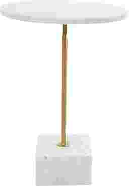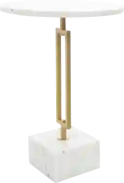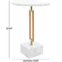 Indulge in the glamorous luxury of plush textures, dazzling details, and sleek finishes to elevate your home and add a sophisticated flair. The Dawpe white side end accent table is crafted from high-quality marble and supported by a metal stand, offering both luxurious appeal and long-lasting durability. Round table is an embodiment of sophistication and glamour, showcasing a pristine white marble with gray veins top and base, complemented by a gold polished stand. The compact design of this marble accent table makes it versatile for holding drinks, decor or serving as a stylish side table.