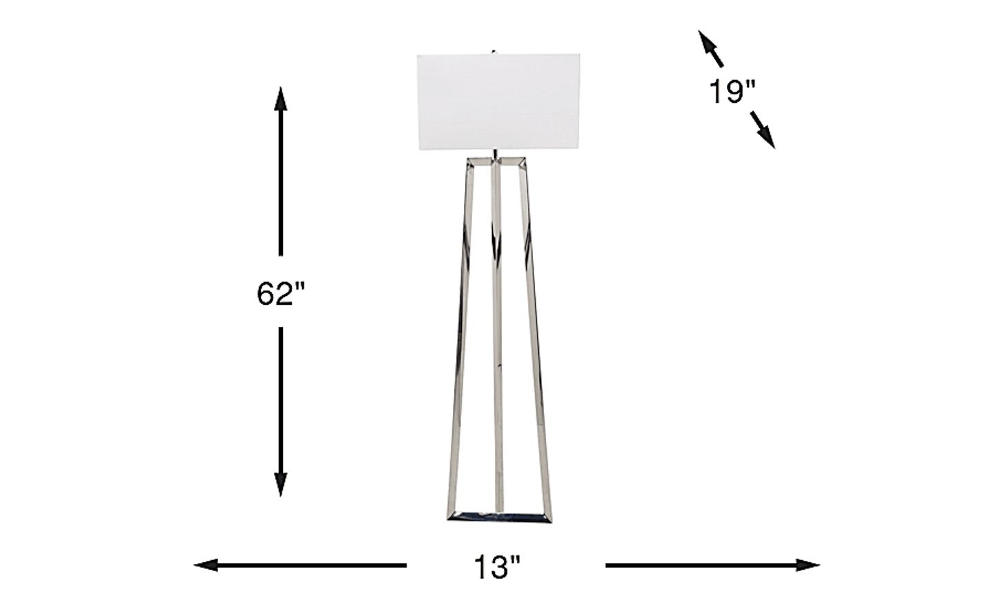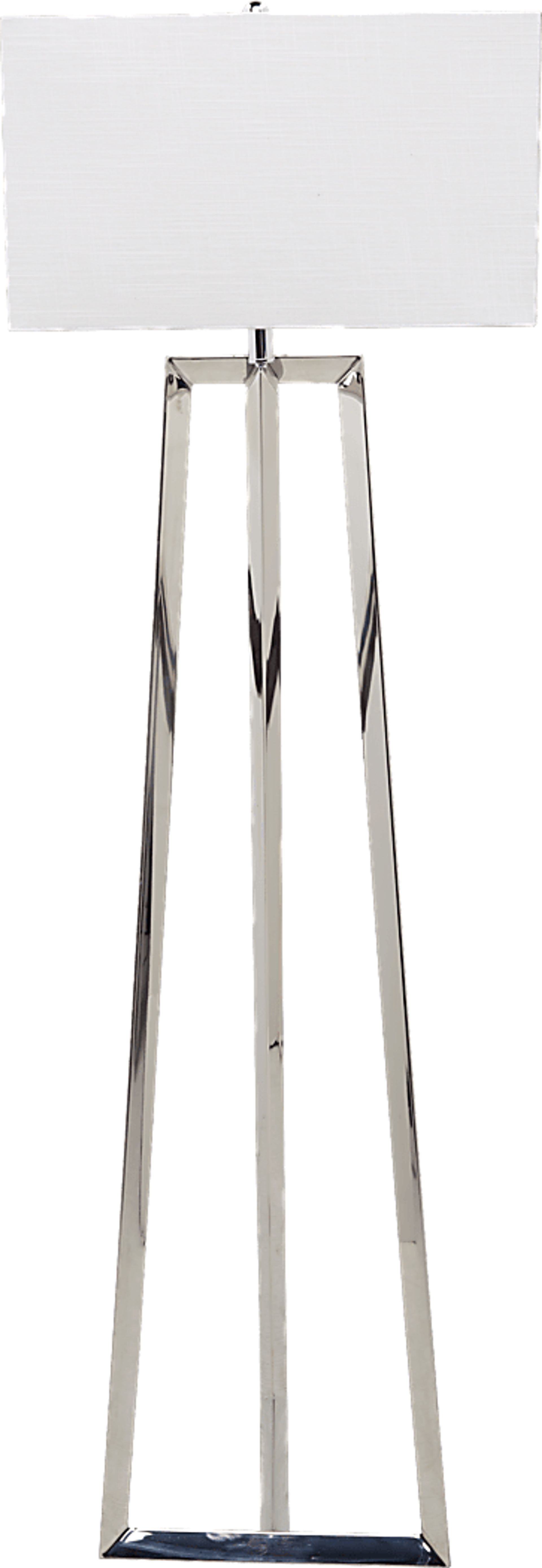 The Dayla floor lamp adds a tailored touch to your home, thanks to its shining chrome base and clean, open aesthetic. Topped with a crisp white rectangular shade, it can accommodate one 100W 3-way bulb (not included).