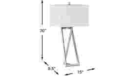 The Dayla table lamp adds a tailored touch to your home, thanks to its shining chrome base and clean, open aesthetic. Topped with a crisp white rectangular shade, it can accommodate one 100W 3-way bulb (not included).
