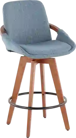 Lend your kitchen or bar a laid-back look with the Daylilly 26 in. upholstered counter stool boasting a wide, low-slung seat crafted in a mid-century modern design. Enhanced with walnut wood armrests and legs, this counter stool is a contemporary and durable piece of furniture for any room. The faux leather upholstery, and a sleek metal footrest adds an element of comfort whether you're eating, mingling, or sipping on a favorite beverage. Customer assembly is required.