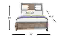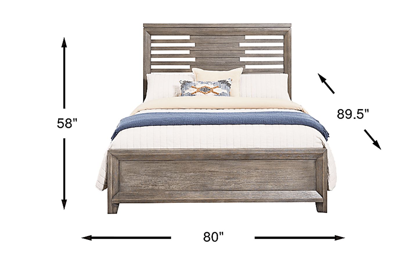 Boasting contemporary countryside charm, the Dayton Place king bed embraces present-day style and rustic appeal. Constructed of acacia veneers, this piece features a gray, distressed-inspired stain that pairs well with existing decor. Artfully designed, the high headboard features offset slats for visual interest. Moulding-inspired trim accentuates this piece. Mattress and foundation (if required) sold separately. Bed shown is queen size.